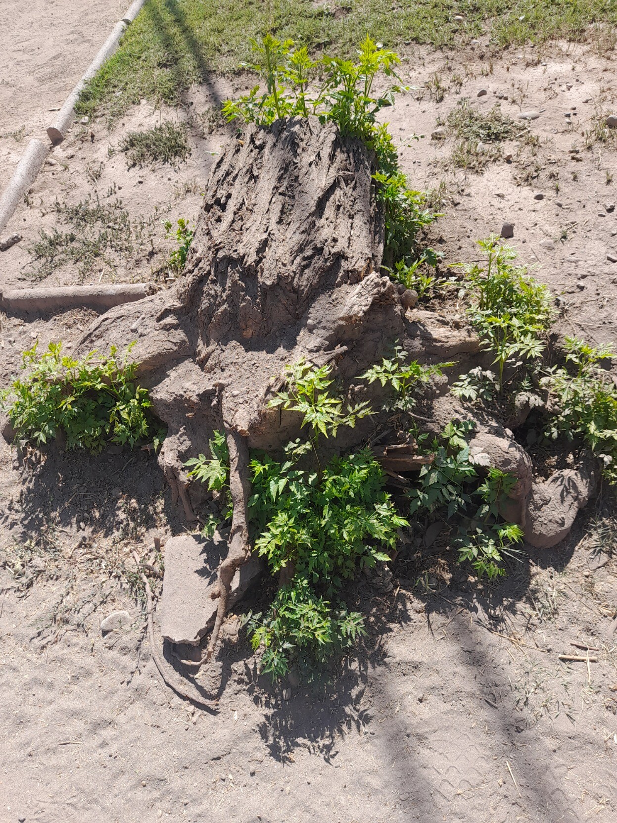 En mi caminata diaria me encontré con este tronco tirado, cercenado, destruido. Pensé que pequeñas plantitas acompañaban a quien fuese un monumental árbol.... pero no, de él la vida seguía a pesar que seres "conscientes" lo destruyeron e intentaron no dejar sus raíces.