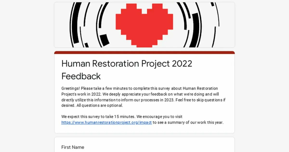 We're looking feedback on HRP's 2022 impact and your thoughts on where we should go in 2023. Have about 15 minutes? We'd love your help! #restorehumanity #edchat