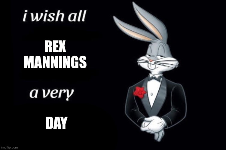 We mustn’t dwell… no, not today. We can't. Not on Rex Manning day