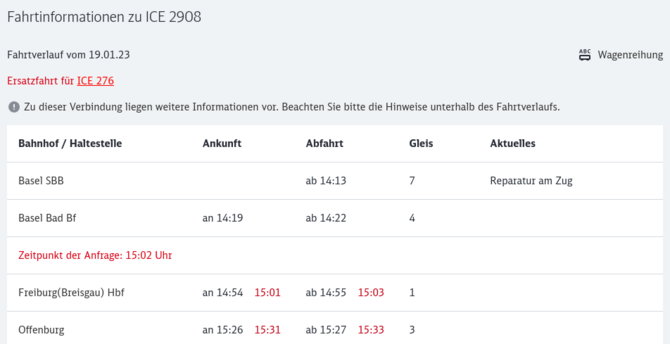 Service-Toot: Derzeit haben viele Züge der #Rheintalbahn massiv #Verspätung wegen einer #Sperrung des Bahnhofs #Emmendingen.