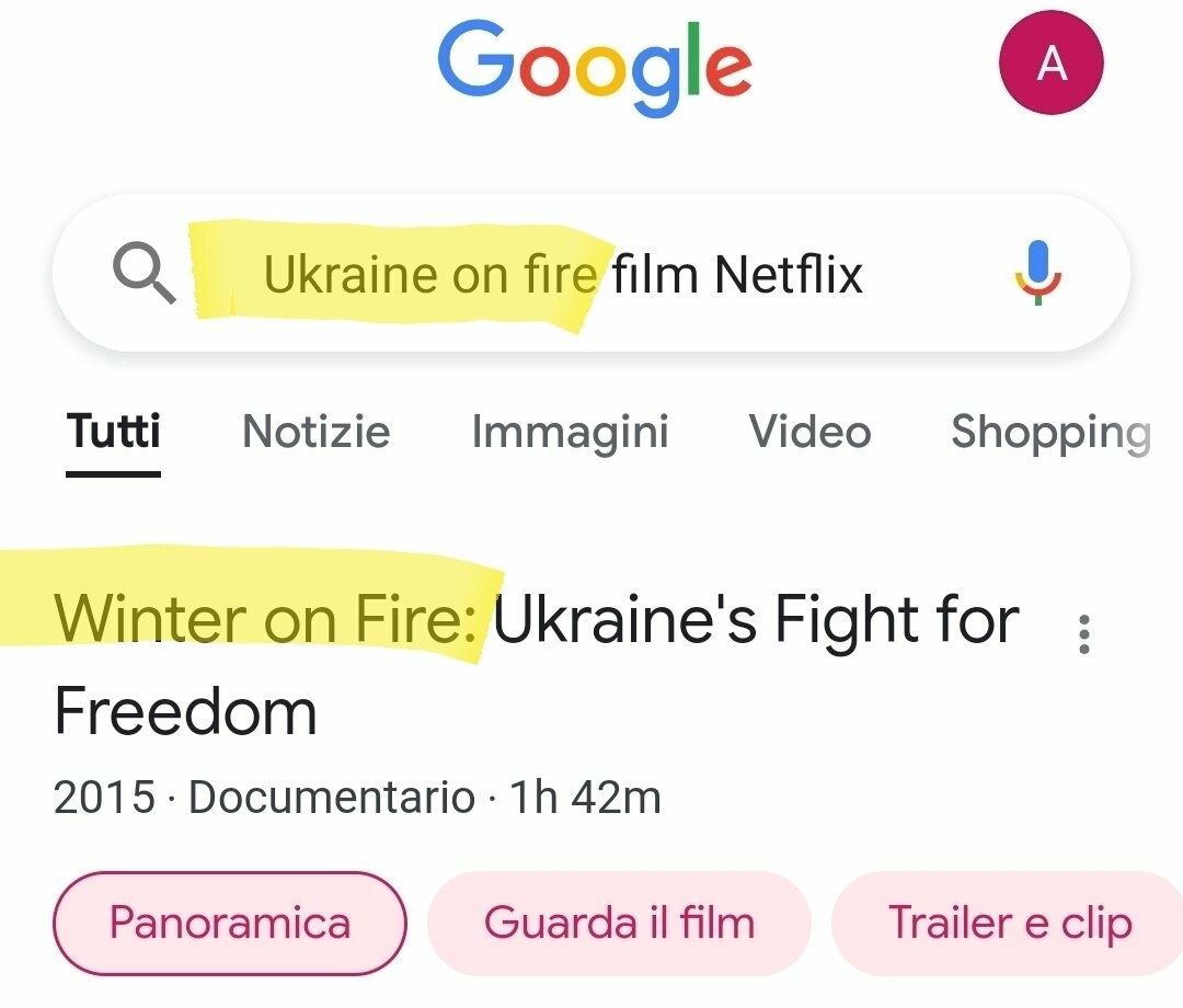 Scemo io che cerco il docufilm di #OliverStone (mica cazzi, Stone non è mica #Riotta) sull'Ucraina, e BigG+@NetflixIT@twitter.com mi mettono in primis il suo perfetto opposto.