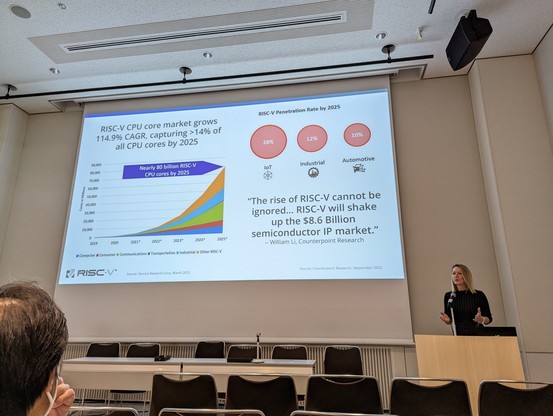 At #ew23 we have a lot of talks from #RISCV Partners, giving the latest overview about what is happening, now Lukas of Machine Wäre is speaking in front a good audience