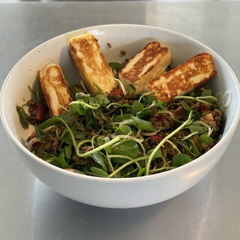 Dhal salad #GelfAlderson #RiverCottage #GreatSalads #homegrown tomatoes, onion & garlic - the halloumi was my addition 🙌 #mymenuplan