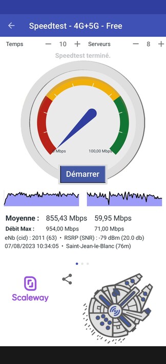 Speedtest #RNCMobile 4G+5G de 10 sec. sur IN2023: 855,43 (Down) 59,96 (Up) réalisé sur le RNC 402011 (Saint-Jean-le-Blanc)