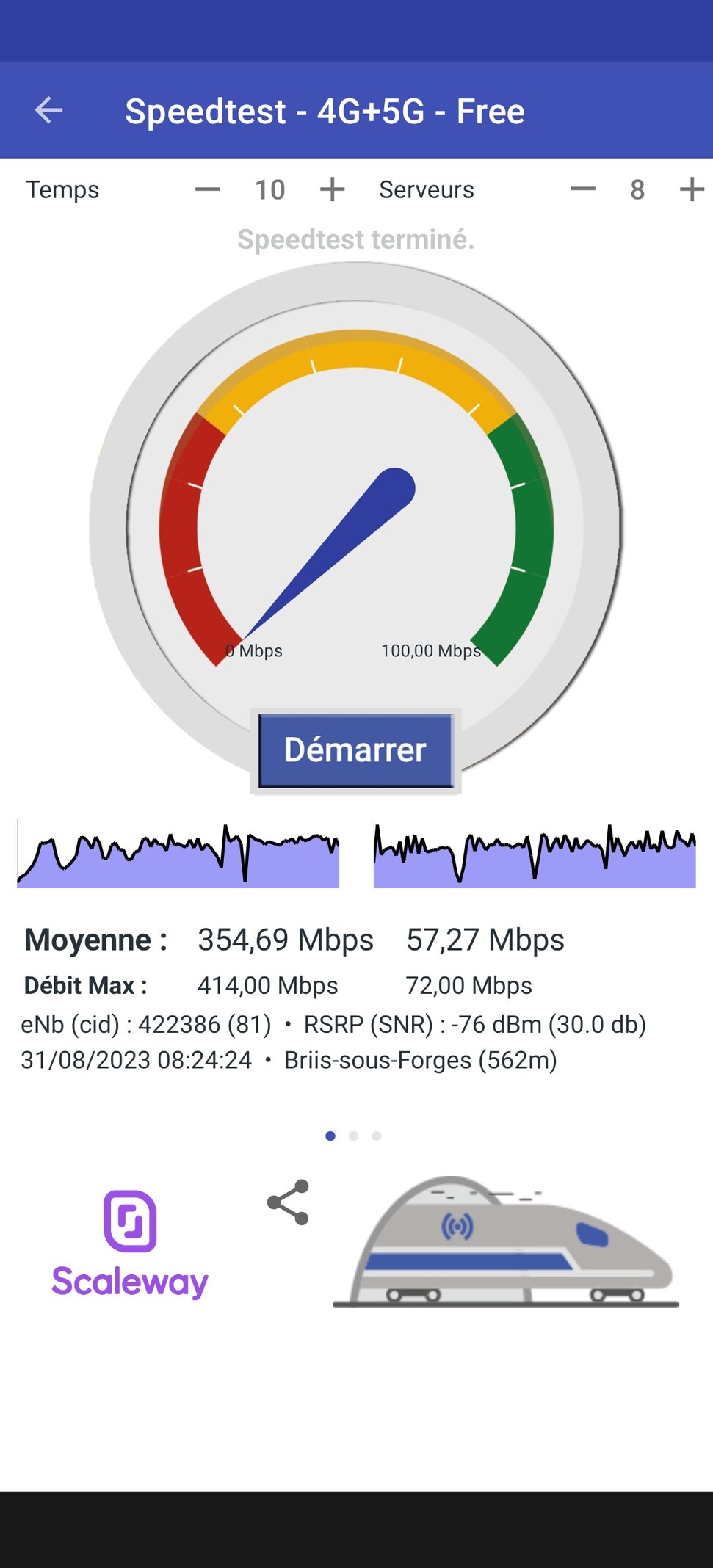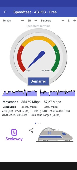 Speedtest #RNCMobile 4G+5G de 10 sec. sur IN2023: 354,7 (Down) 57,28 (Up) réalisé sur le RNC 422386 (Briis-sous-Forges)