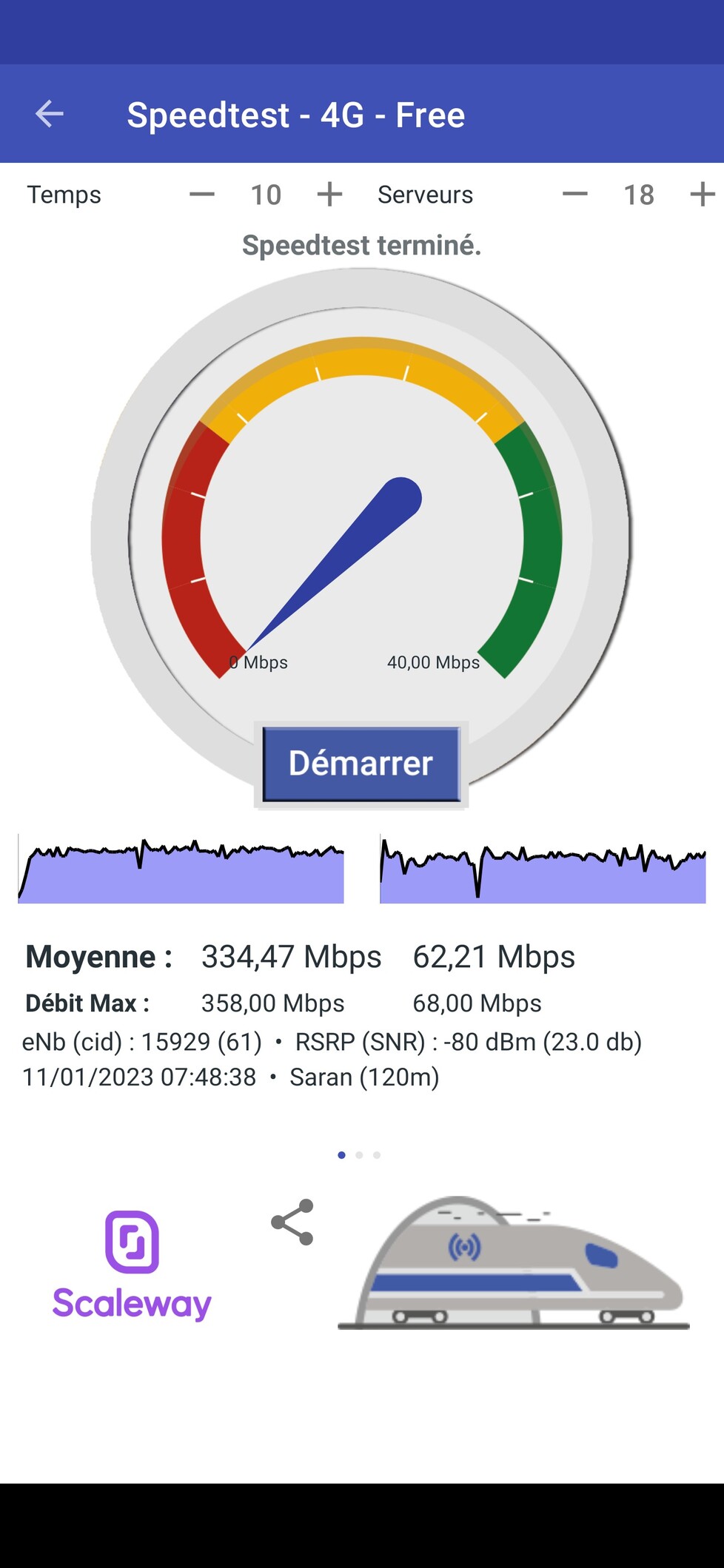 Speedtest #RNCMobile 4G de 10 sec. sur GM1917: 334,47 (Down) 62,22 (Up) réalisé sur le RNC 15929 (Saran)