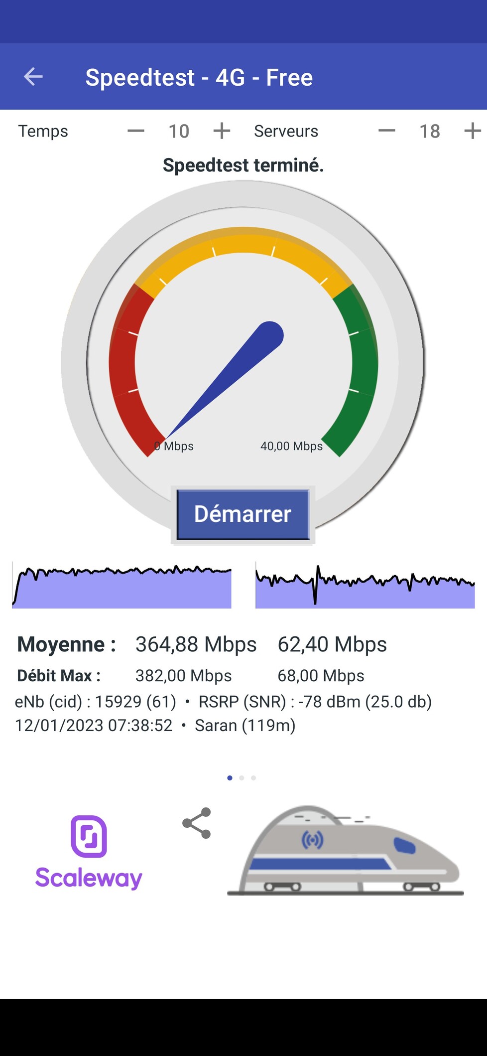 Speedtest #RNCMobile 4G+5G de 10 sec. sur IN2023: 796,14 (Down) 78,37 (Up) réalisé sur le RNC 15929 (Saran)