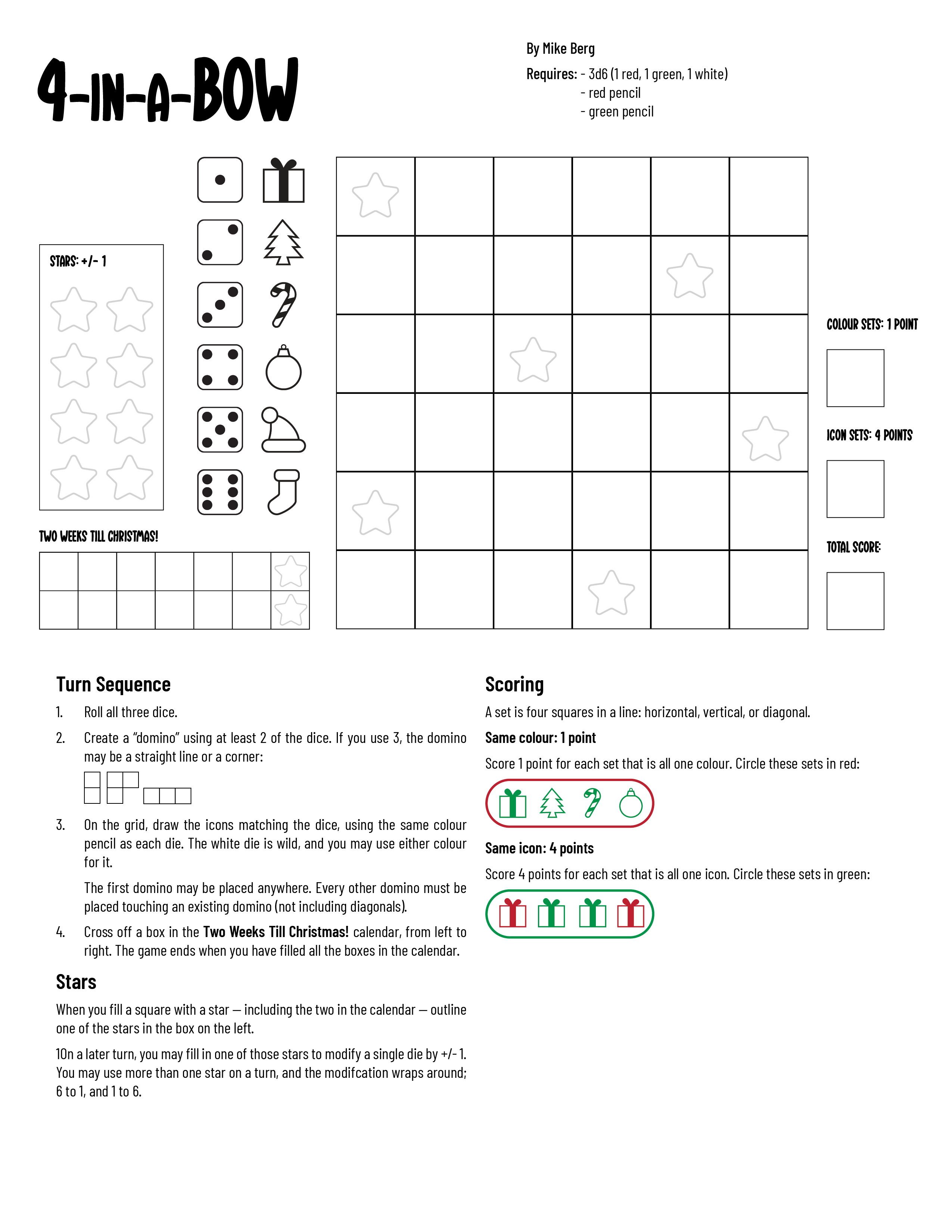 I made a little Christmas-themed roll-n-write... I haven't even playtested it yet, but if anyone wants to give it a try...