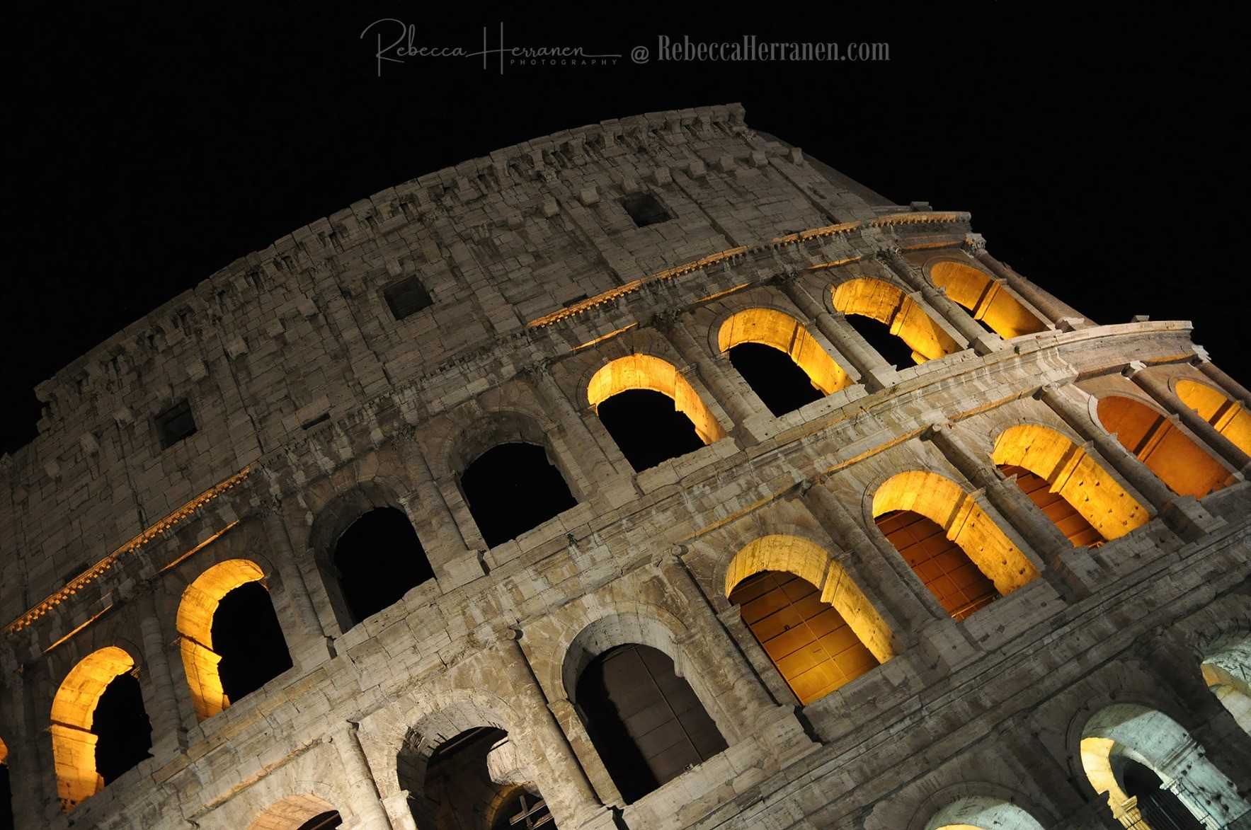 When in #Rome. The Roman #Colosseum by night with all of the lights brings out the beautiful architectural lines in the arches and ancient stones. Dramatic, can you hear the crowds roar? Images will NOT include logo when purchased.
