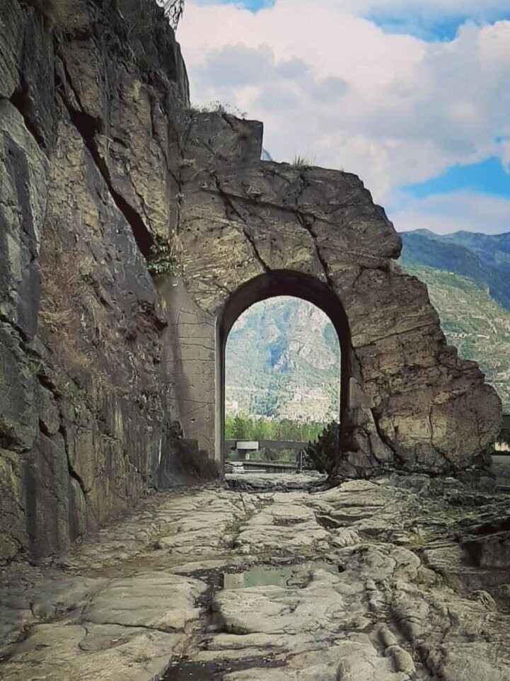 For #romanroadsfriday a section of the 'Via delle Gallie' in Donnas, Val d’Aosta, Italy. The wheel ruts are still visible. The arch was carved into the rock.