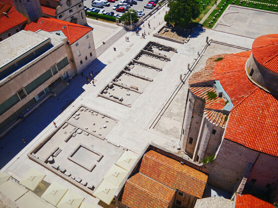Next to the ancient church of St Donatus, the outlines of the forum buildings are clearly marked out in the square as well as the 'Pillar of Shame'