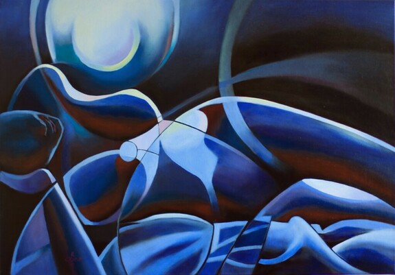 #blue #rondisme #roundism #painting #oil #cubism #deco #night #poster #color #femaleform #oilpainting #downloadables #downloadable #artforsale #buyart #akkers #corne #prints #print #art #printables #printable