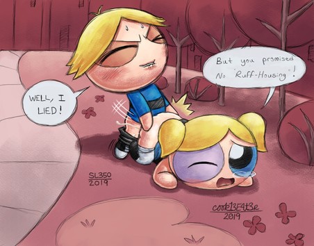 This was a collaboration with @C00K13E4T3R <3. Never trust a Rowdyruff Boy's word. Bubbles was tricked yet again. Boomer was drawn by me. Bubbles and the BG were drawn by C00K13E4T3R.