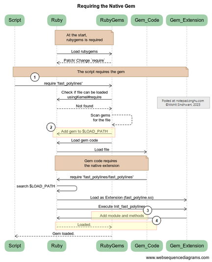 Want to learn more than you expected about how #ruby loads a native gem? Part 2 of my "Learning by Reversing a Native Gem" is now available and includes this (IMO) fantastic sequence diagram!