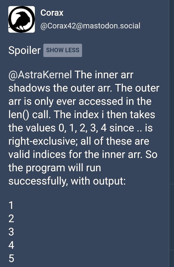The best answer and explanation given by @Corax42 for this #RustChallenge