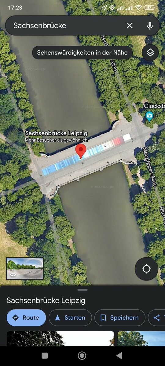 Bei Google Maps nach Sachsenbrücke Leipzig suchen und auf die Satelliten-Ansicht wechseln. So großartig! 😍