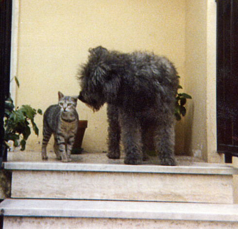 Rocky e Semolina, una vera "coppia di fatto" ante litteram, inseparabili. Lei, con l'avvicinarsi del parto, chiamava a raccolta la famiglia (non voleva stare da sola) e si adagiava del cesto di vimini con panni, preparato all'uopo; lui assisteva come ostetrico, pulendo i gattini appena nati; in seguito faceva il babysitter con enorme pazienza (pelo lungo, paradiso per gattini...)
