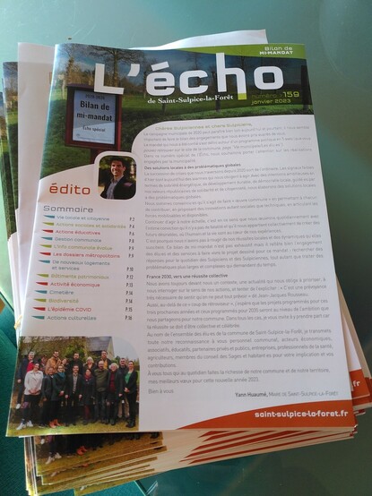 Le bilan de mi-mandat de l'équipe municipale de #saintsulpicelaforet est disponible en PDF ici, https://saint-sulpice-la-foret.fr/wp-content/uploads/2023/01/LEcho-de-St-Sulpice-n%C2%B0159-Janvier-2023-Special-Mi-mandat.pdf