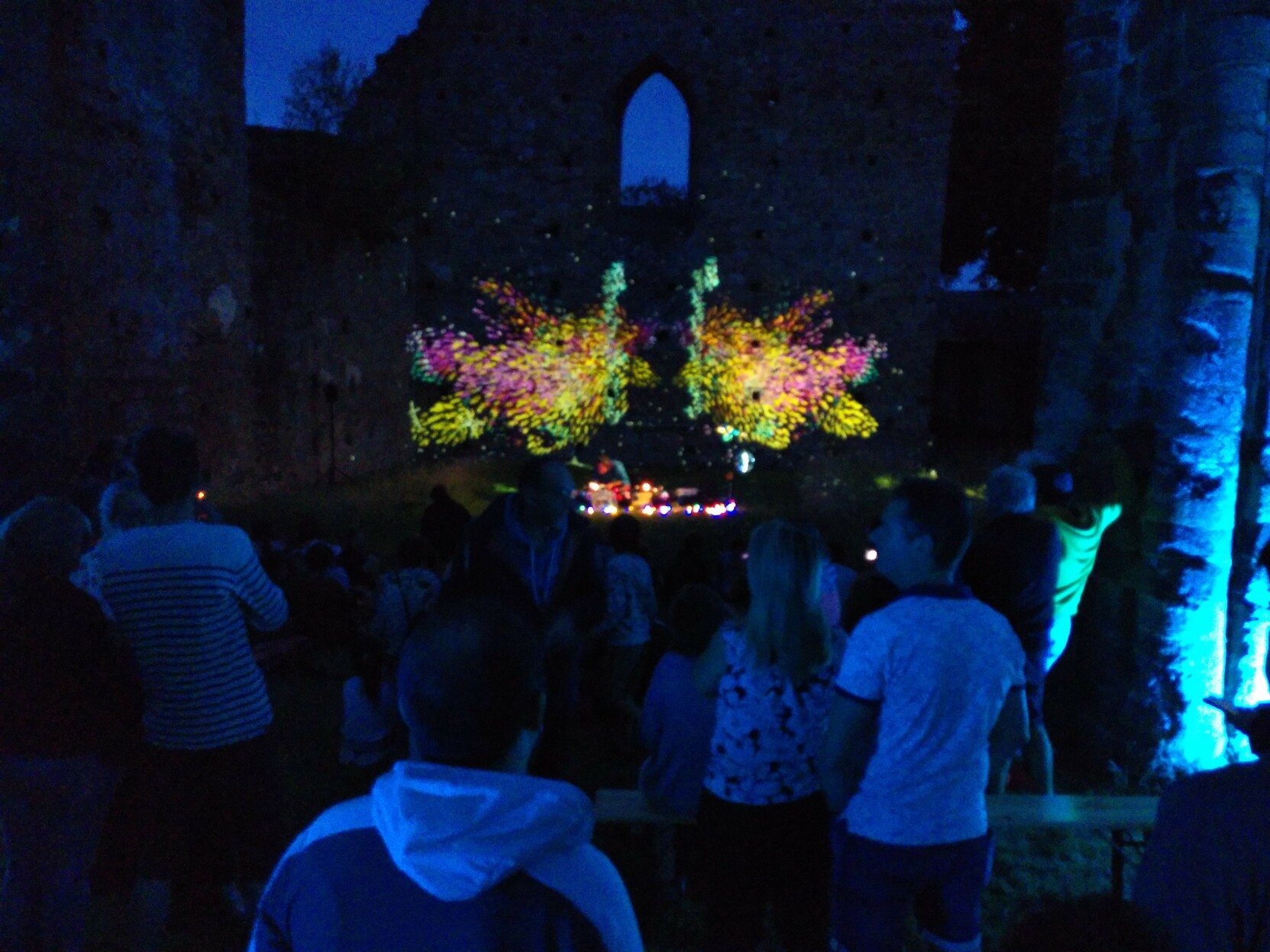 La soirée se termine en DJ Tropicool avec mapping vidéo dans les ruines de l'abbaye #SaintSulpicelaForêt