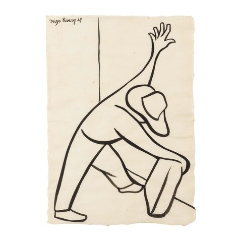 Diego Rivera (1886-1957), Picapedrero, 1947, encre sur papier signé et daté en haut à gauche.