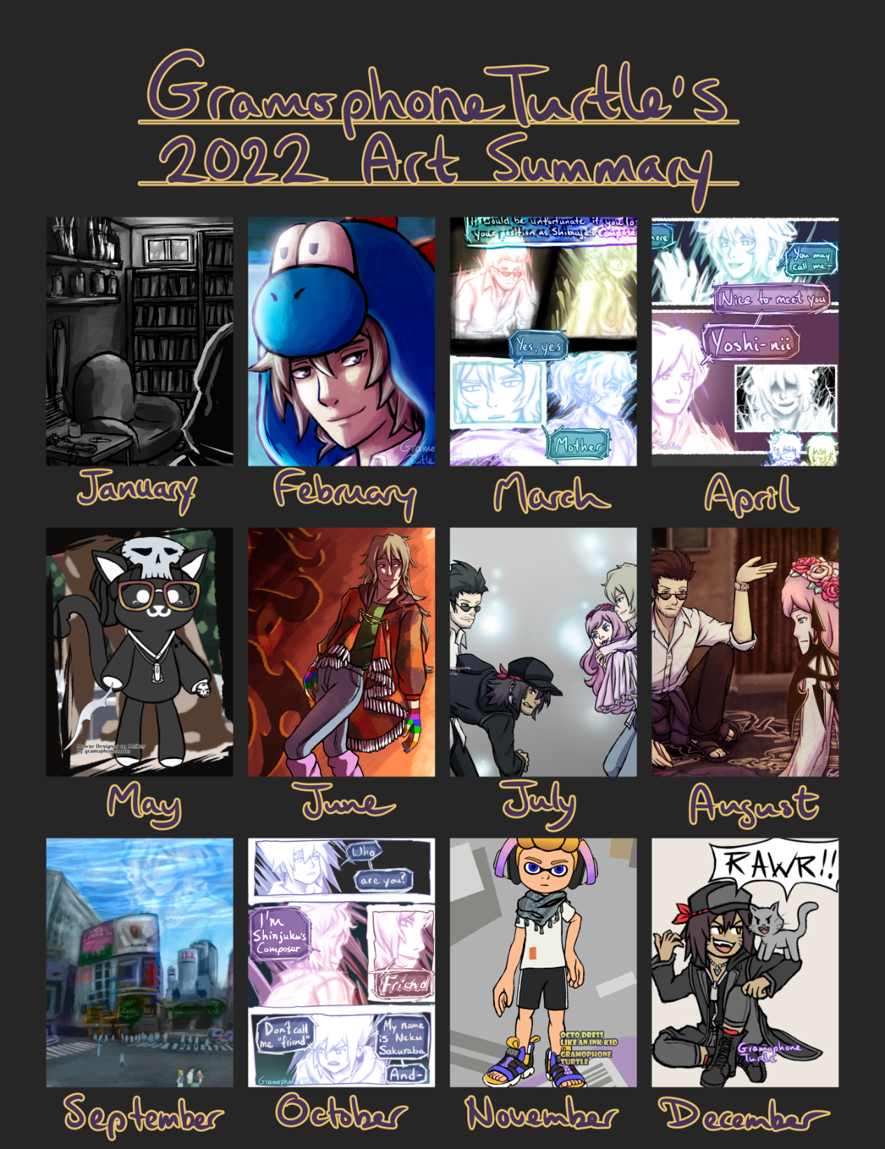 Lots of #TWEWY and #NTWEWY art. Some #Splatoon3 through the dress up games. Hoping to keep making art next year as well!