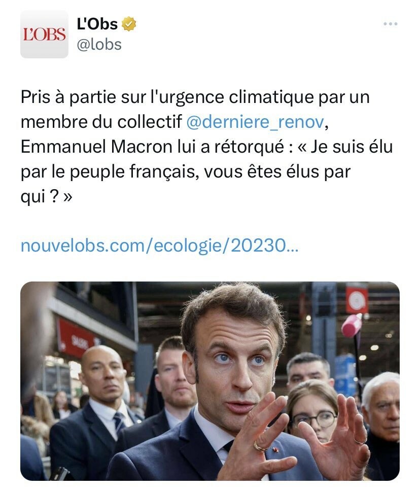 L'interpellation violente du militant écolo qui interpellait Macron au salon de l'agriculture embarrasse l'Elysée: "Le gus n'a pas eu de gestes menaçants. Cela peut alimenter les procès en déconnexion", déplore un Marcheur influent. Quelle idée... #Off #macron #politique #journadon #salonagriculture #climat #ecologie