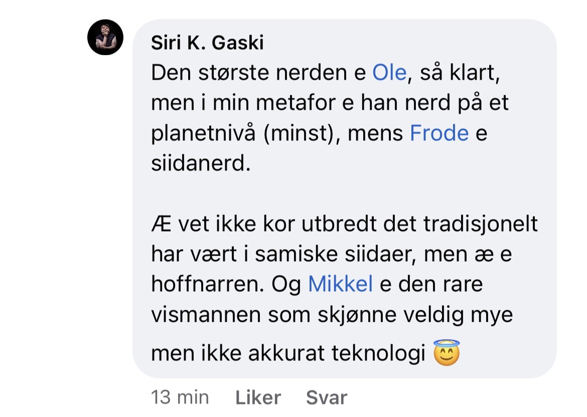 @mbergnordlie (bitteliten sidenote: til neste gang e det her sånne poster som e bra å emneknagge med #samenet eller #samenettbruk eller en lignanes #fáddágilkor vi blir enig om, for lettere gjenfinning. Mvh, halvkauringsbibliotekaren)