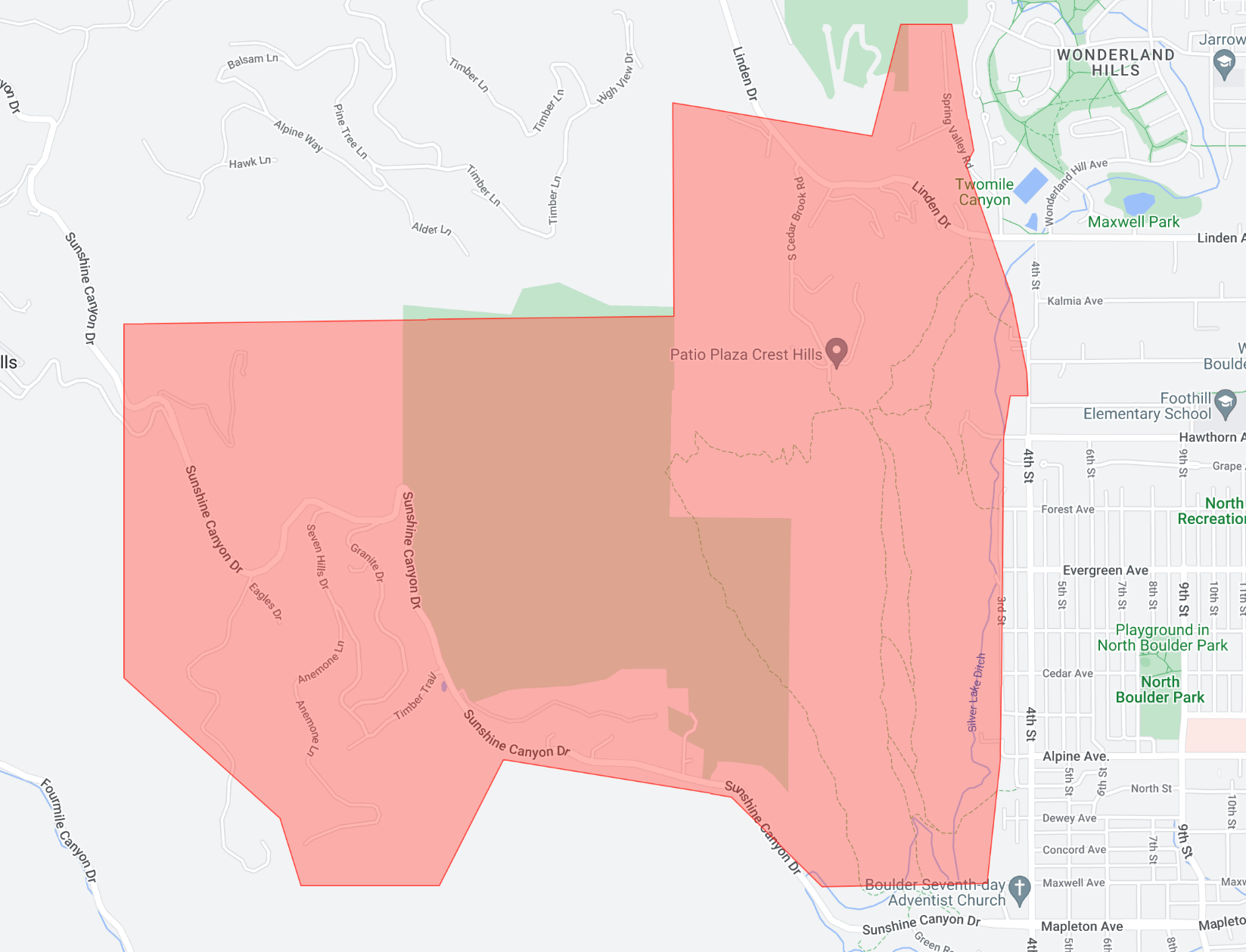 Also showing that Sunshine Canyon Dr. is closed out by the Sanitas trailhead.