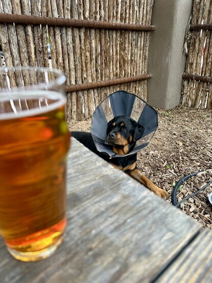 There’s nothing in the rules that says a dog in a cone can’t hang out at a brewery! #SantaFeBrewing