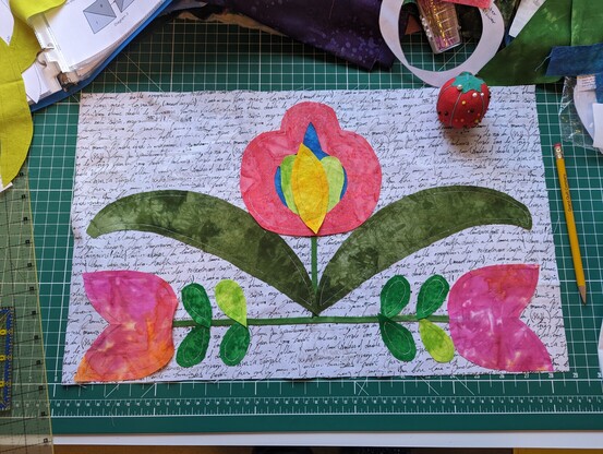 #secretgardenbom #sarahfielkebom #Quilt I laid out my first block last night. It will have an appliqued stem and leaves.