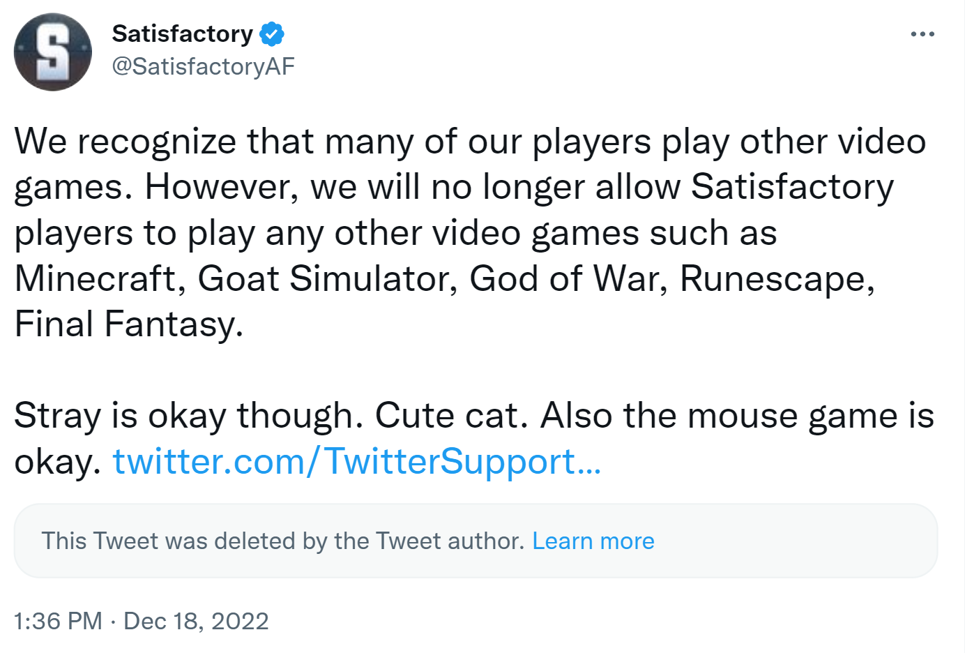 https://twitter.com/SatisfactoryAF/status/1642114139534290945