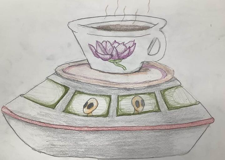 Today's Sketch-a-day topic: Saucer. So why not a flying saucer, that's....a saucer? #aliens #sketchaday #saucer #drawing #coloredpencil