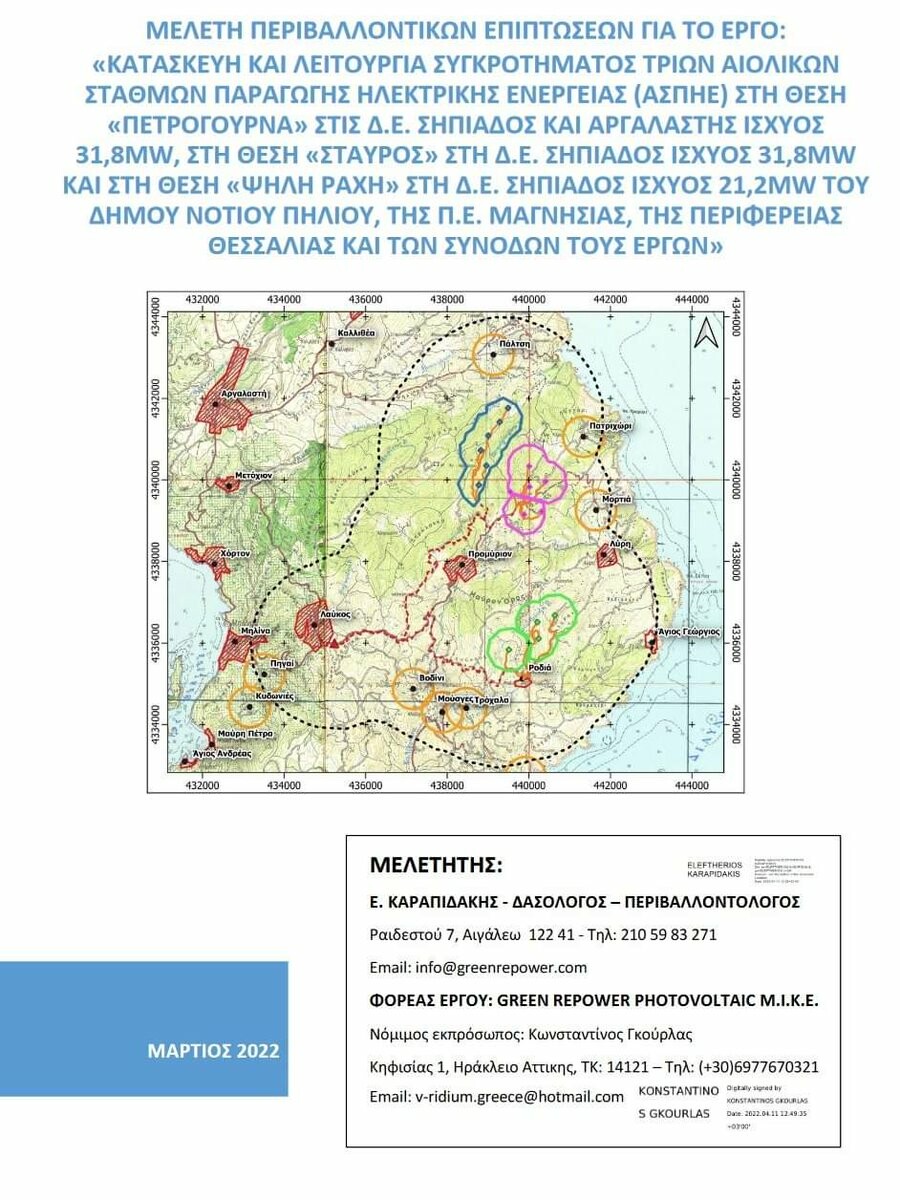 👉Τρία αιολικά στο νότιο Πήλιο βγήκαν σε διαβούλευση.