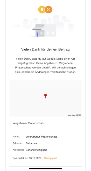Ich habe einen #Schatz vergraben. Mal sehn, ob #googlemaps den Ort aufnimmt…