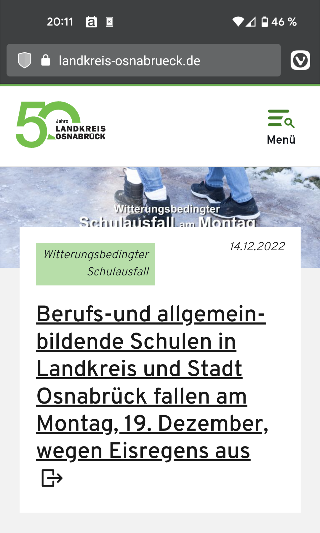 #Schulausfall im Landkreis und in der Stadt #Osnabrück morgen wegen #Glätte