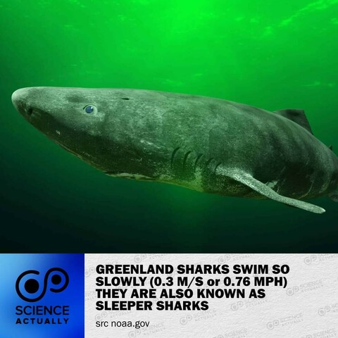 Greenland sharks swim so slowly (0.3m/s or 0.76mph) they are also known as Sleeper sharks.