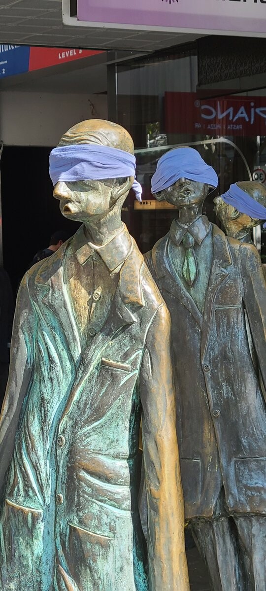 Last night Scientist Rebellion blindfolded iconic statues in over 10 countries ranging from Panama to Australia to demand climate action in response to the recent IPCC report.