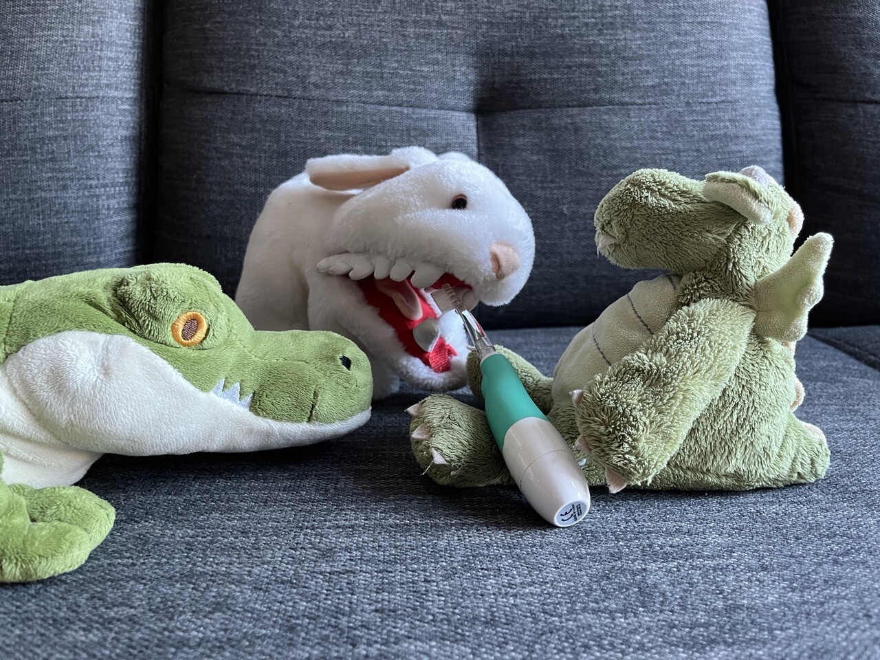 The smallest member of my household is a dragon leveling up as a bard, thus mandates that I continuously sing for the duration of all tooth-brushing ventures.