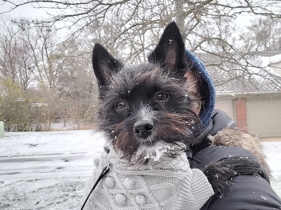 #scrappy #cairanian #rescuedog #doggo #pupper #mastodon #dogsofmastodon #mondog #snowdog #goodboy