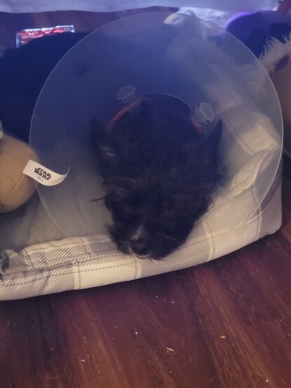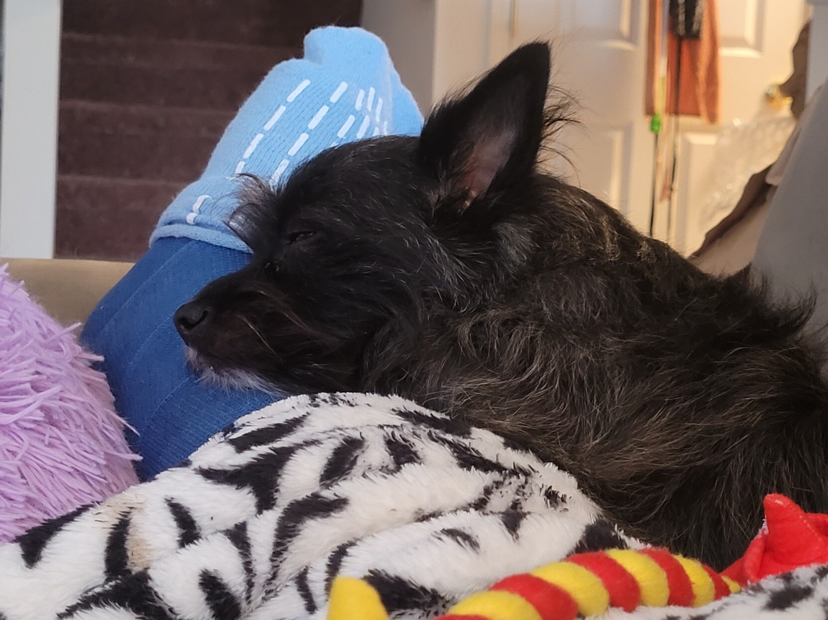 #Scrappyland #bedtime #goodboy #rescuedog #Cairanian #mastodon #dogsofmastodon #doggo #pupper