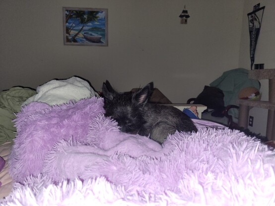 #scrappyland #bedtime #goodboy #rescuedog #cairanian #mastodon #dogsofmastodon #doggo #pupper