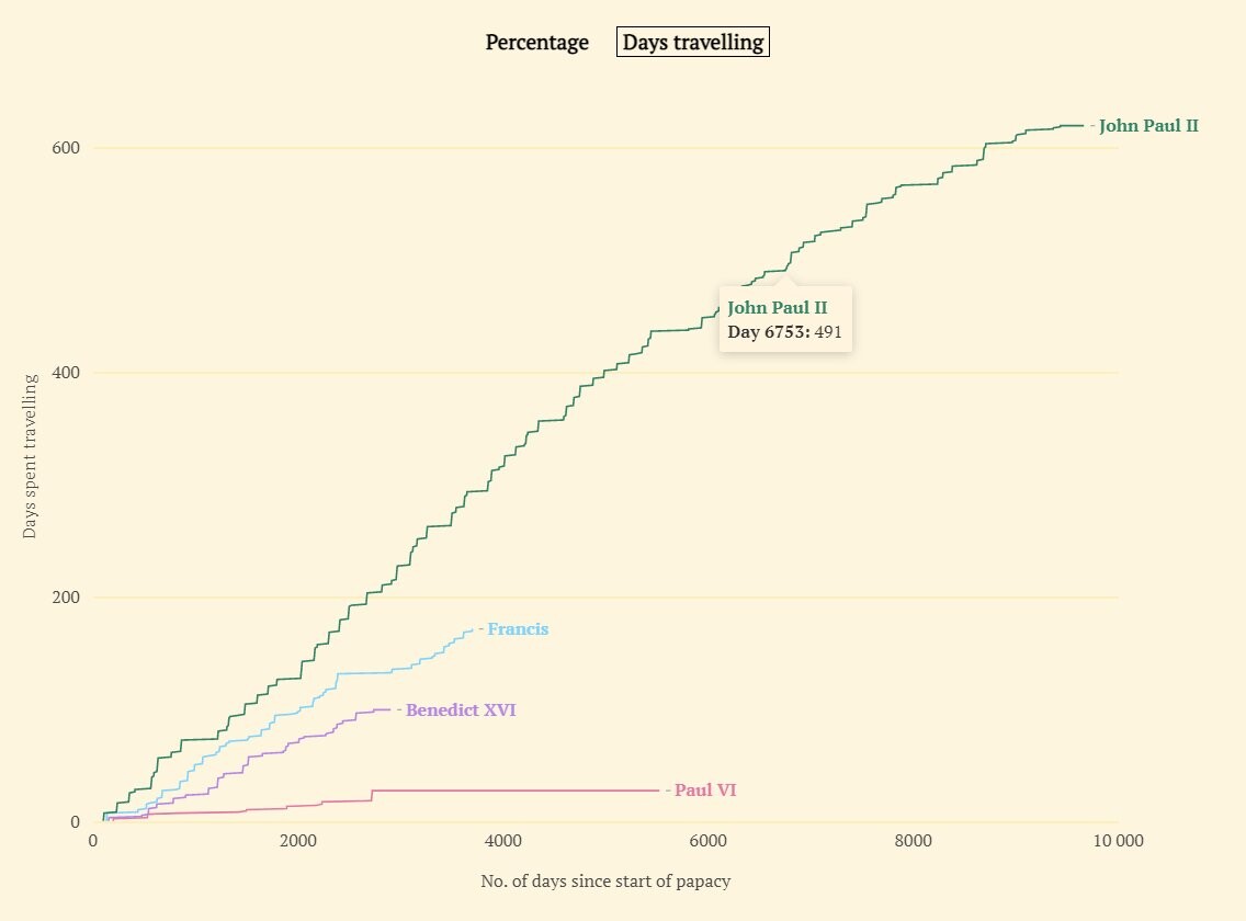 Uno #scrollytelling sulla visita del #Papa in Ungheria con alcune interessanti #dataviz sui viaggi papali e non solo.