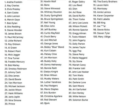 Rolling Stone Magazine list of Top 100 Singers of All Time. Thoughts?