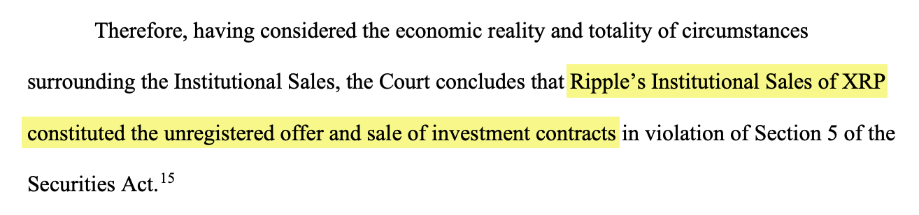 This is from the order (https://courtlistener.com/docket/19857399/874/securities-and-exchange-commission-v-ripple-labs-inc/) on the motions for summary judgment in the SEC v. Ripple case (https://courtlistener.com/docket/19857399/securities-and-exchange-commission-v-ripple-labs-inc/)