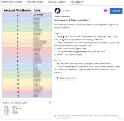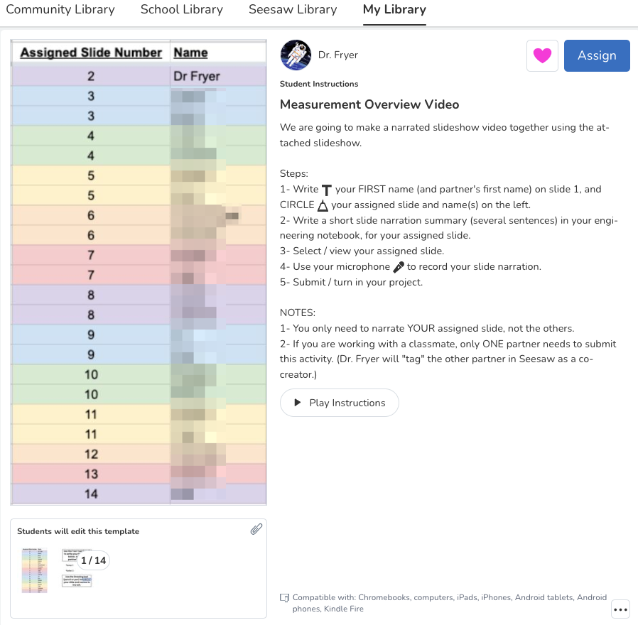 Today my 6th grade Intro to Engineering students are co-creating a "narrated slideshow video" about Measurement, using #Seesaw. Here's our shared activity: