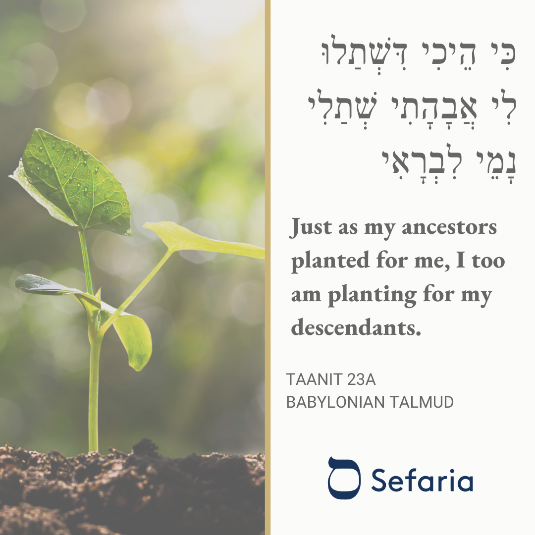 Walking along the road one day, he saw a man planting a carob tree. He said, "In how many years will it bear fruit?" The man replied, "In seventy years." He said, "Is it so clear to you that you will live seventy years?" The man replied, "I found the world with carob trees. Just as my ancestors planted for me, I too am planting for my descendants."