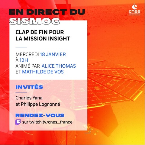 Mercredi, on fait le point sur la fin de mission @NASAInSight. On parlera surtout de l'instrument 🇫🇷 #SEISsurMars, de ses performances, de ses résultats, de comment scientifiques et ingénieurs ont travaillé avec lui pendant 4 ans, et puis on lui dira au revoir 🥲