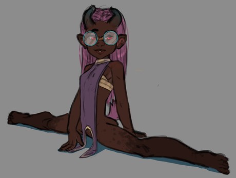 The goblin Saels got into her troll master's drink cabinet, and is playing video games while cum-drunk. She's going to probably regret that when the troll gets back.