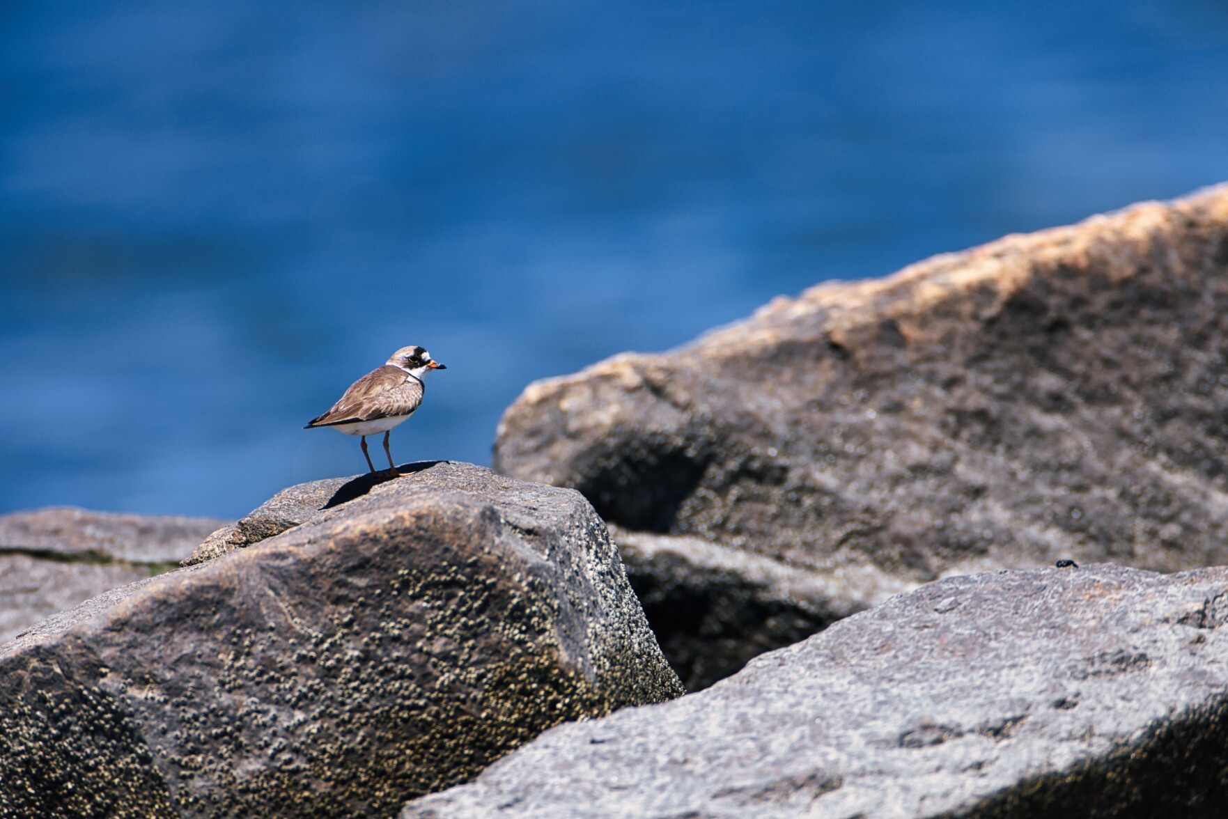 A semipalmated plover perching on some rocks at Jamaica Bay Wildlife Refuge.