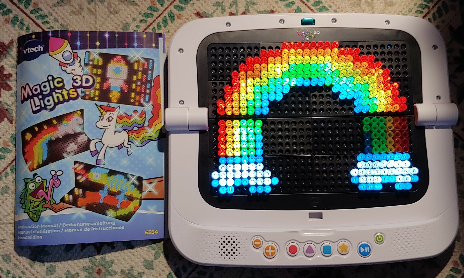 Think I am in love with my daughter's light toy. You put the pegs in wherever you want and it lights up behind your pattern. Different codes make different light patterns.